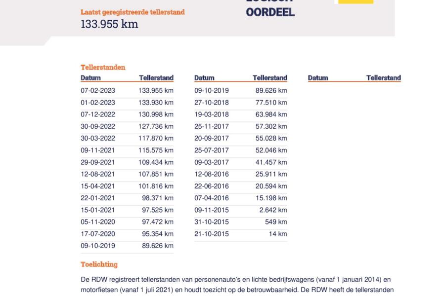 Het NAP-logo staat alleen bij voertuigen die gecheckt zijn bij de RDW en waarbij de RDW een logisch oordeel heeft afgegeven ten aanzien van de reeks kilometerstanden.